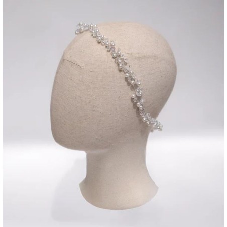 Bijou de cheveux en perles et strass fixées sur une tige en argenté.