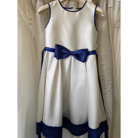 Robe en satin mikado avec noeud et ceinture bleu roi.