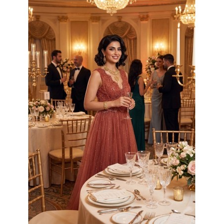 Tissus : imitation satin +tulle avec broderie et brillant