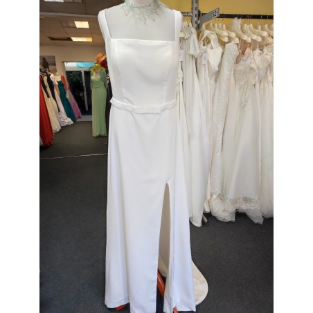 Robe fluide avec 2 bretelles, robe fendue sur le coté gauche.