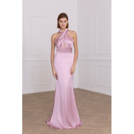 Robe longue effet satiné légèrement moulante de forme droite.
