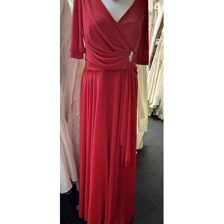Robe avec bustier ouverture en "V" avec manches courtes. La broche sur le côté peut être déplacée ou enlevée.