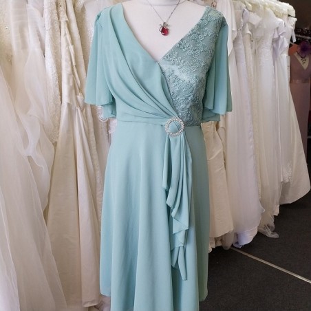 La robe se ferme avec élastique dans le dos qui permet de pourvoir être portée par une personne dont la taille est fixée entre le 44 et le 52.